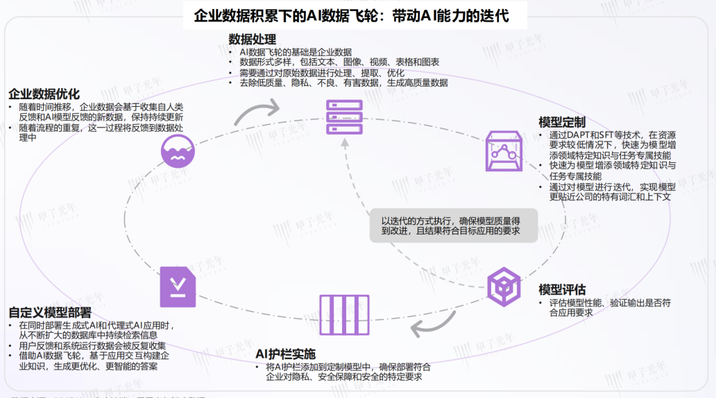 与一次性部署的传统软件不同,AI Agent的价值会随着时间推移而增长。报告提出了“AI数据飞轮”的核心概念:Agent在执行任务、与业务交互的过程中,会持续产生新的数据和用户反馈。这些高质量的数据反过来又被用于优化和“训练”Agent,使其决策更精准、流程处理更高效。这个“数据输入-性能提升-产出更优数据”的正向循环,构成了Agent越用越聪明的核心动力。