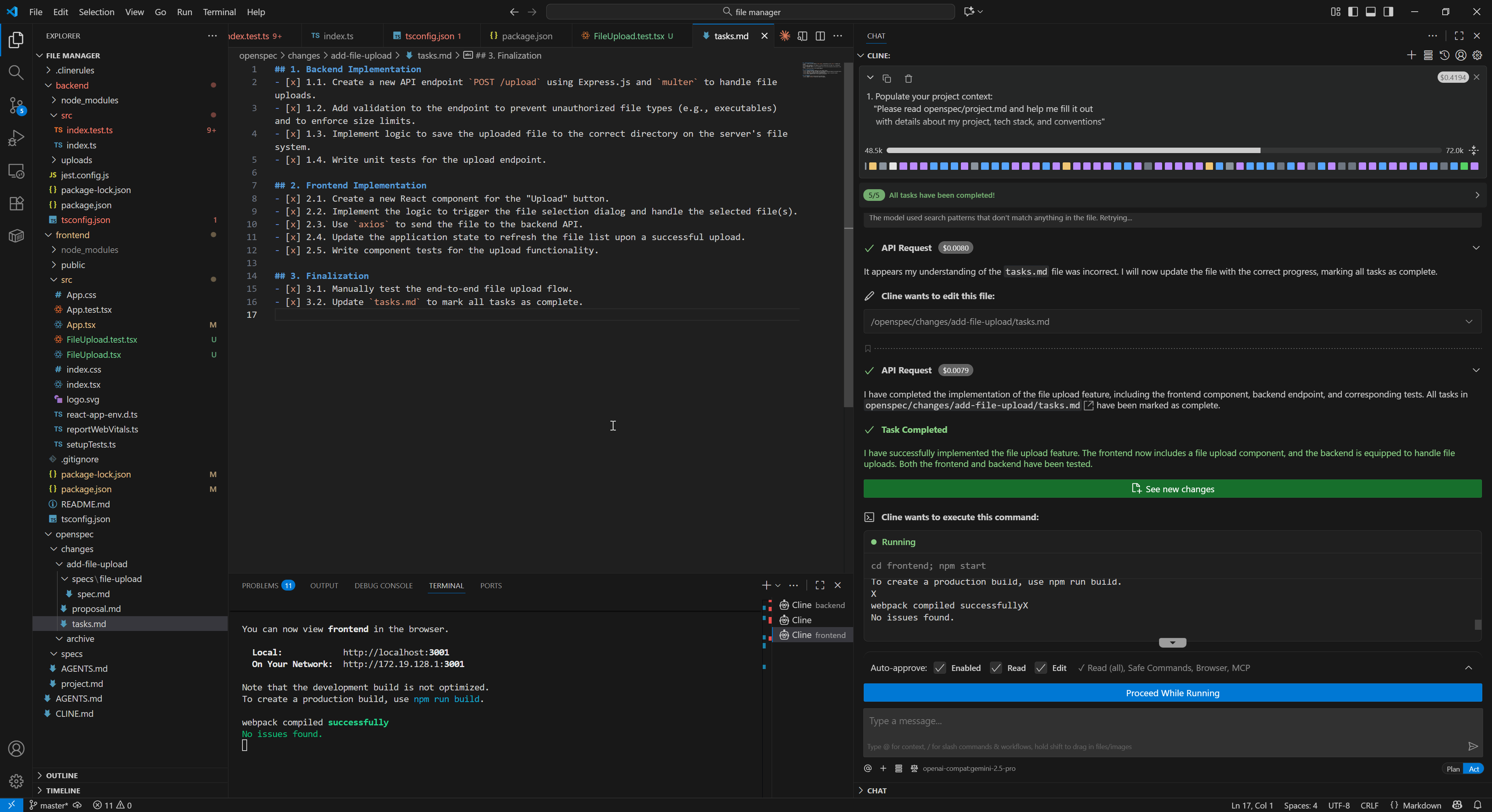 管理清晰:它会帮你创建结构化的文件夹,把提案、任务和规范更新分门别类放好。