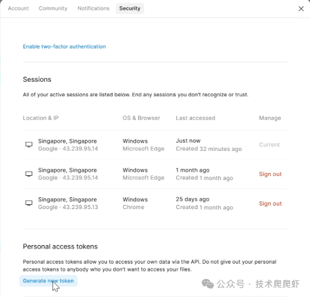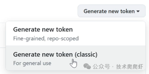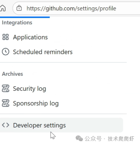 接下来我们来到配置文件,再把API Key添加上。我们来到GitHub右上角settings,左边找到Developer settings -> generate new TOKEN,