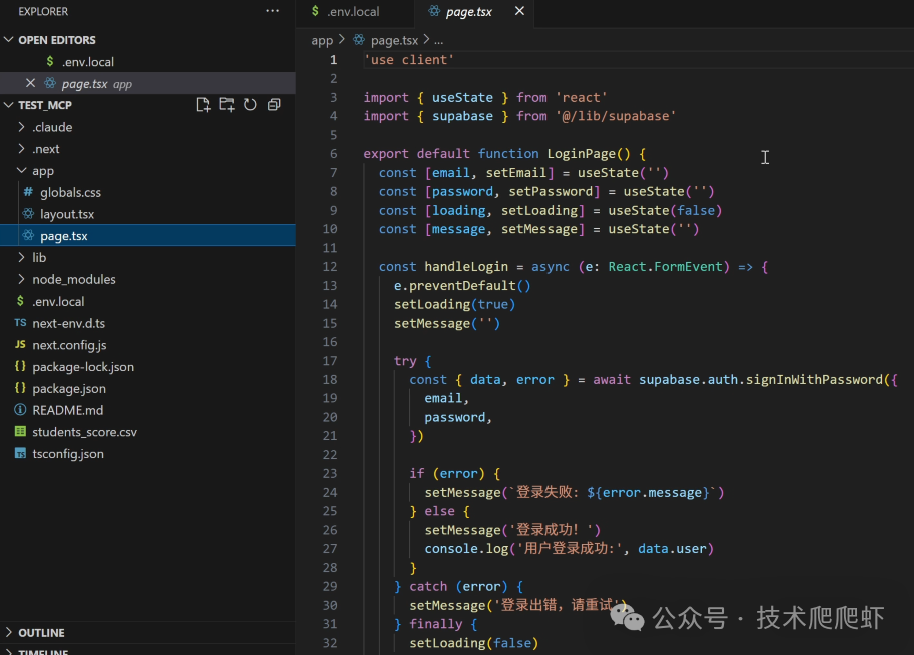我让AI用nextjs写一个项目,利用Supabase自带的用户鉴权功能,实现用户登录,代码写完了。
