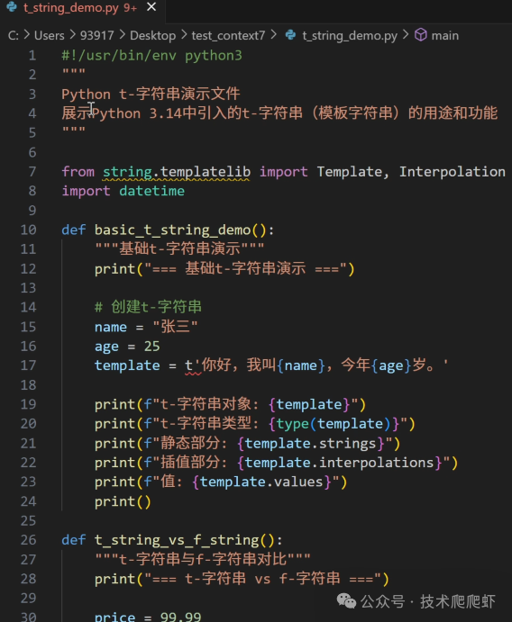 我让AI写一个Python文件来演示t字符串有什么用。我们看到AI没有理解我的意思,