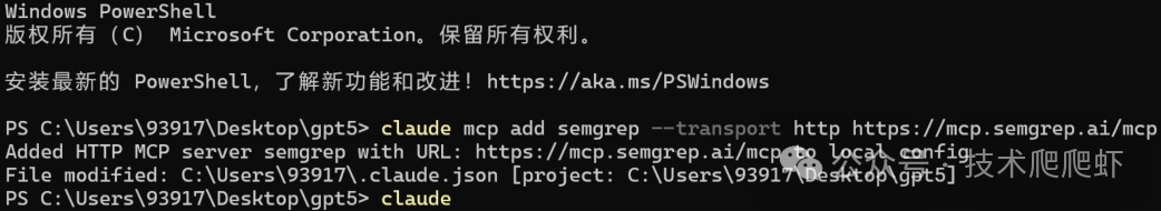 后面参数可以不用填,直接回车。它会告诉我们MCP是安装到这个文件里面。