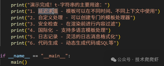 我们看到AI这次写的代码,这是Python 3.14引入的t字符串,也就是模板字符串,下面有它的主要作用,可以进行延迟求值,自定义处理,最重要的一个安全检查,基本上把t字符串的功能都列清楚了,代码生成的很不错。