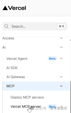 代码写好了,现在需要一个平台快速把它部署上线。Vercel就是一个免费提供项目部署的平台。Next.js就是由Vercel开发维护的框架,我们使用Next.js开发的這個热气球网站跟Vercel平台是绝配。接下来我们就使用Vercel的MCP,一句话把它部署上线。我们来到Vercel 的文档站,https://vercel.com/docs,这里搜索MCP,在左侧找到Vercel MCP Server。