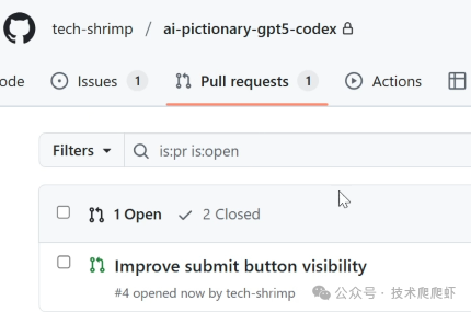 然后他又调用了Github MCP,创建了一个pull request,把刚才的修改以一个PR的形式提交了上去。我们在Github的pull request里面就可以看到AI推送上来的代码,