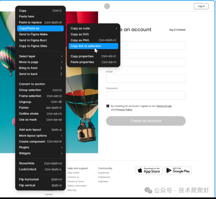 用Next.js 15框架制作一个登录页面,严格遵照这个Figma的设计稿。我们选中这个设计稿的页面,当然也可以选择某个区域,或者某些元素。选中页面,右键copy -> copy link to selection,然后把链接粘贴过来,这样执行。
