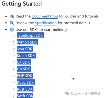 终于我们来到了视频的最后第15个MCP,这里我不准备介绍具体的MCP Server了。我们看的是GitHub MCP的官方仓库,https://github.com/modelcontextprotocol,这里面提供了很多的SDK,