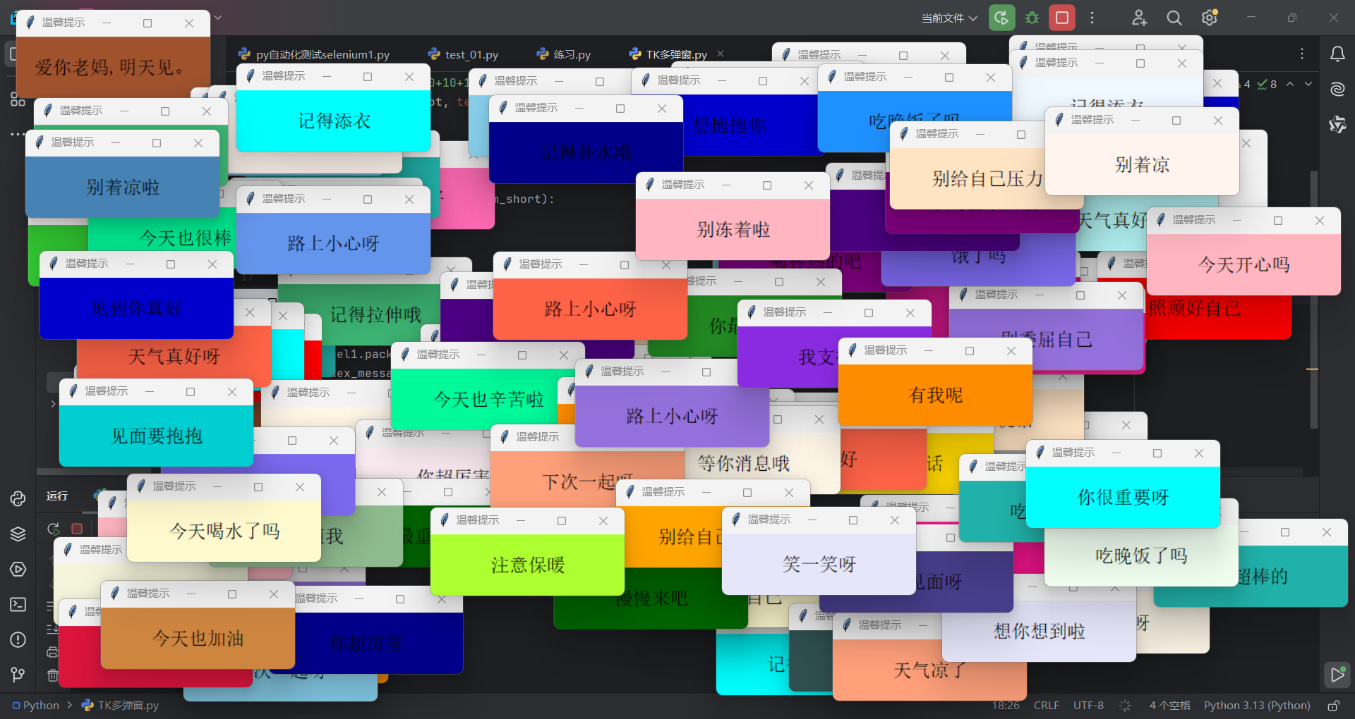 使用25行python代码制作满屏温馨弹窗,基于TK库以及random库即可实现