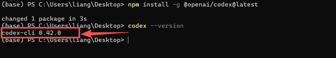 如下,执行 codex --versio 显示版本,说明安装成功了