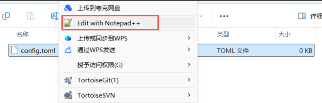 右键 config.toml,用 Notepad++ 打开该文件(用记事本或VS打开也行)