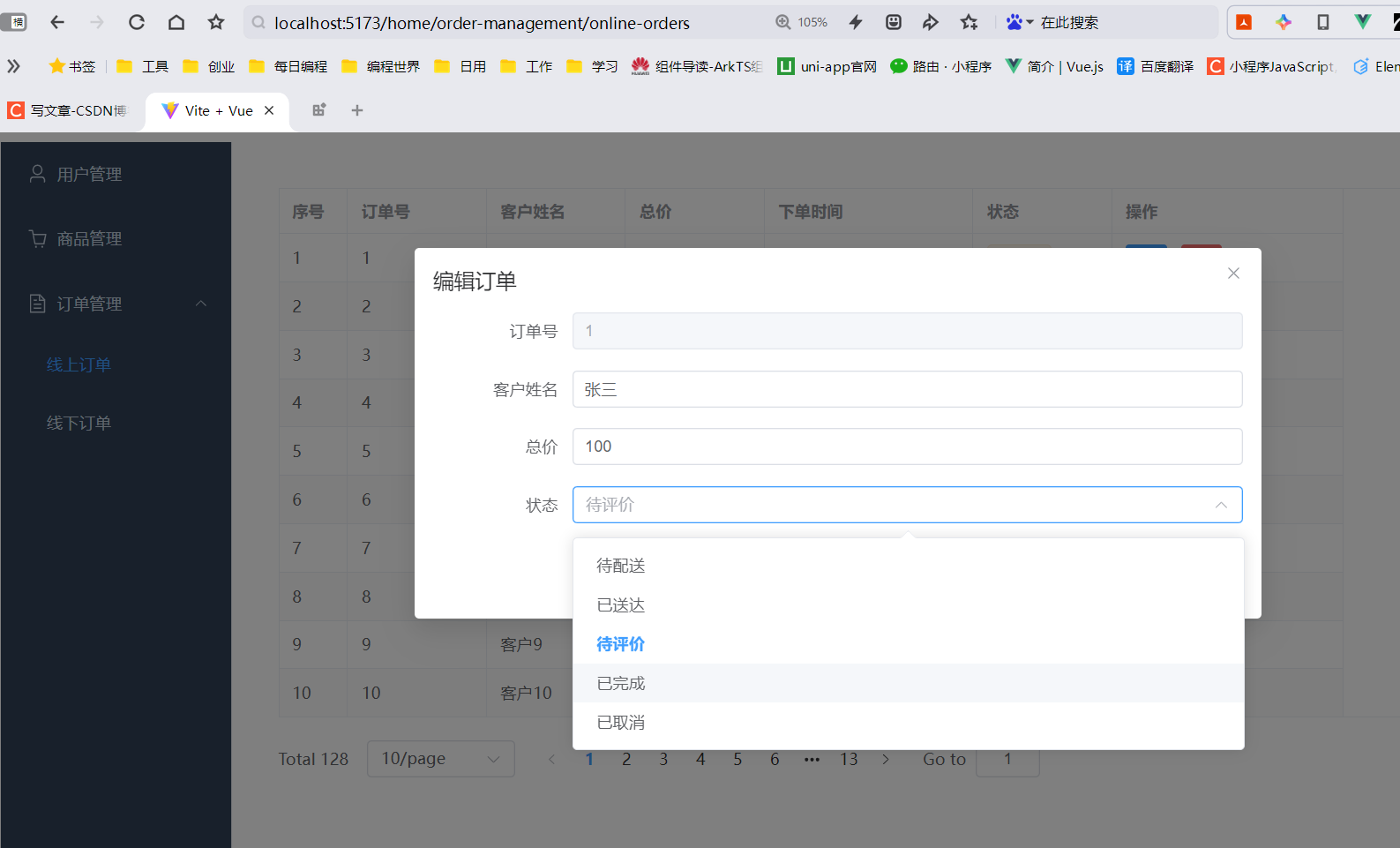 4,订单管理页