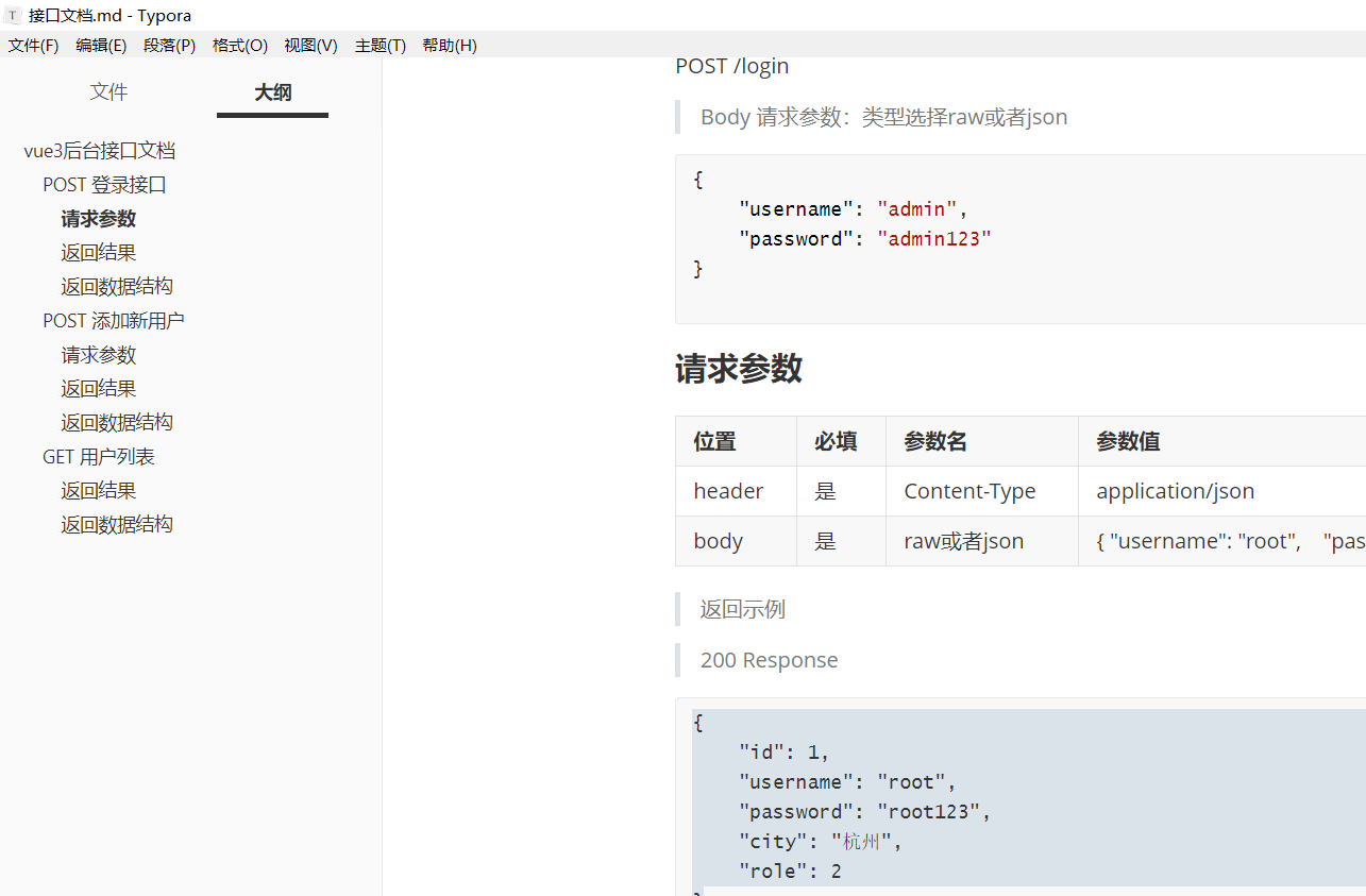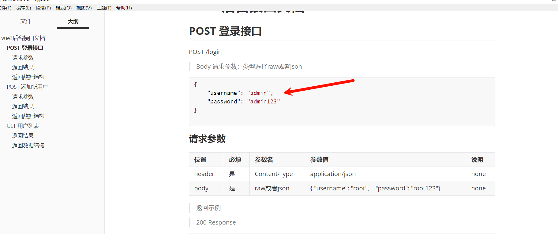 首先看下我们的接口文档里登录的接口