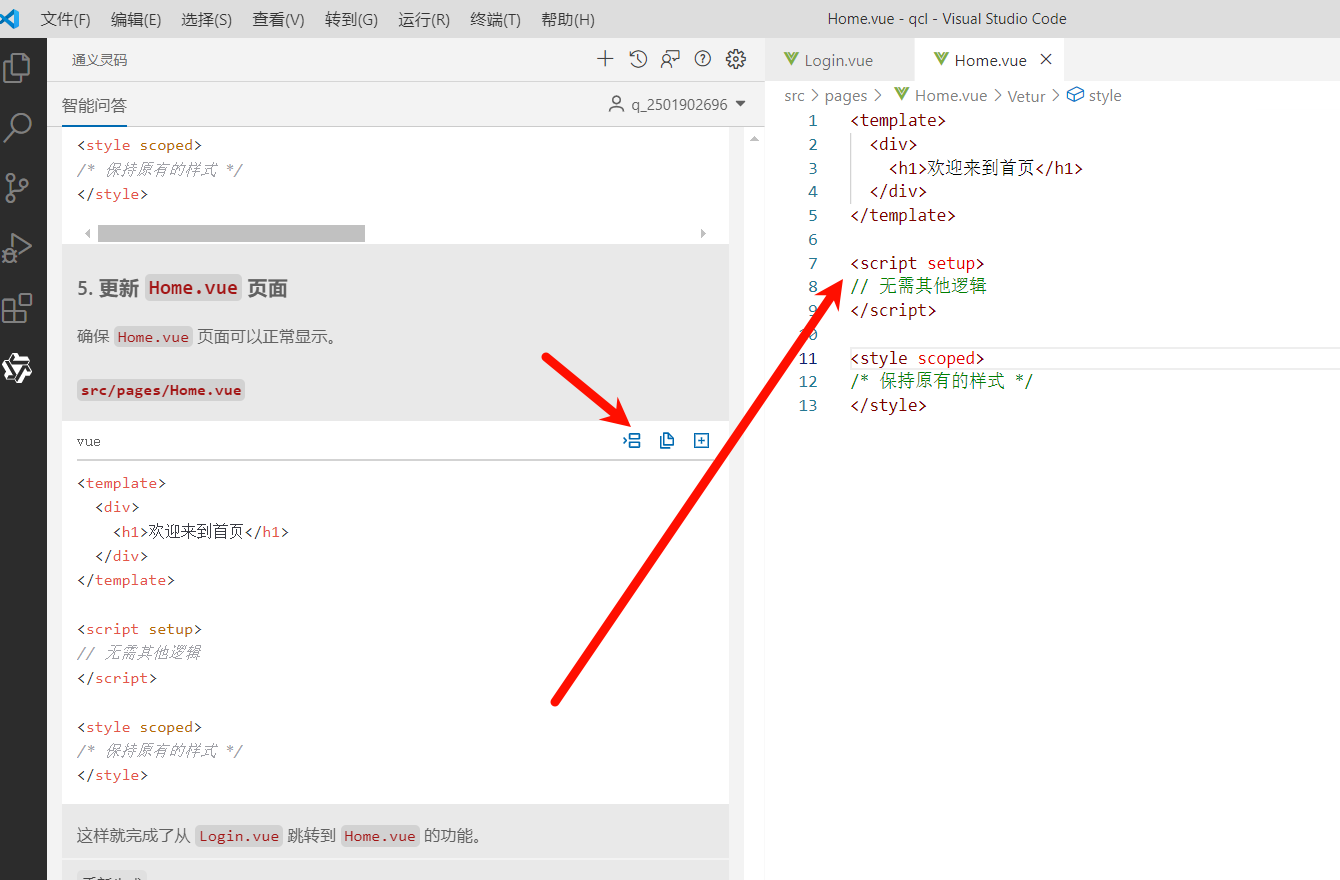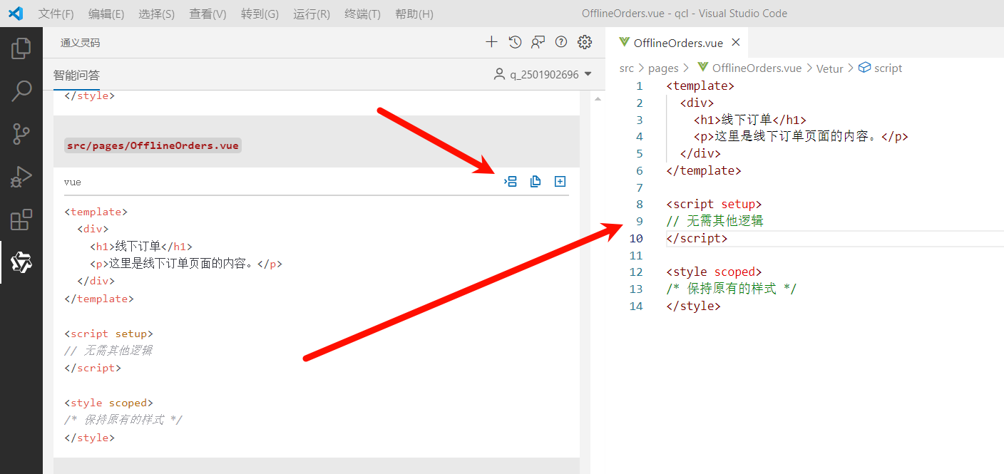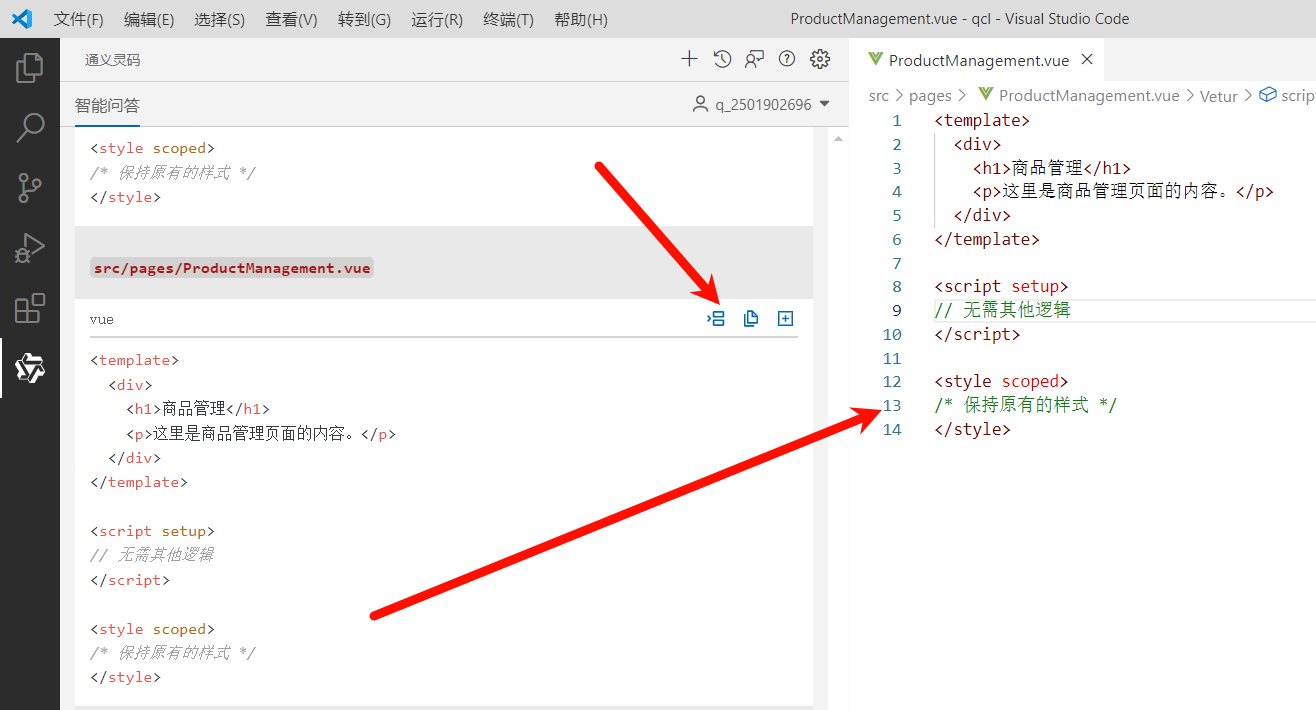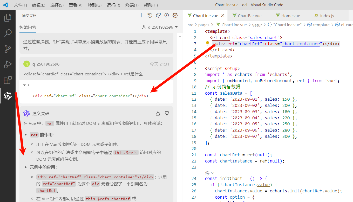 - ai可以解答一些代码无关的问题:比如我们想知道vscode的一些快捷键,就可以直接问ai。