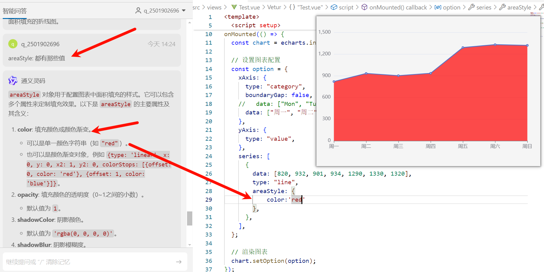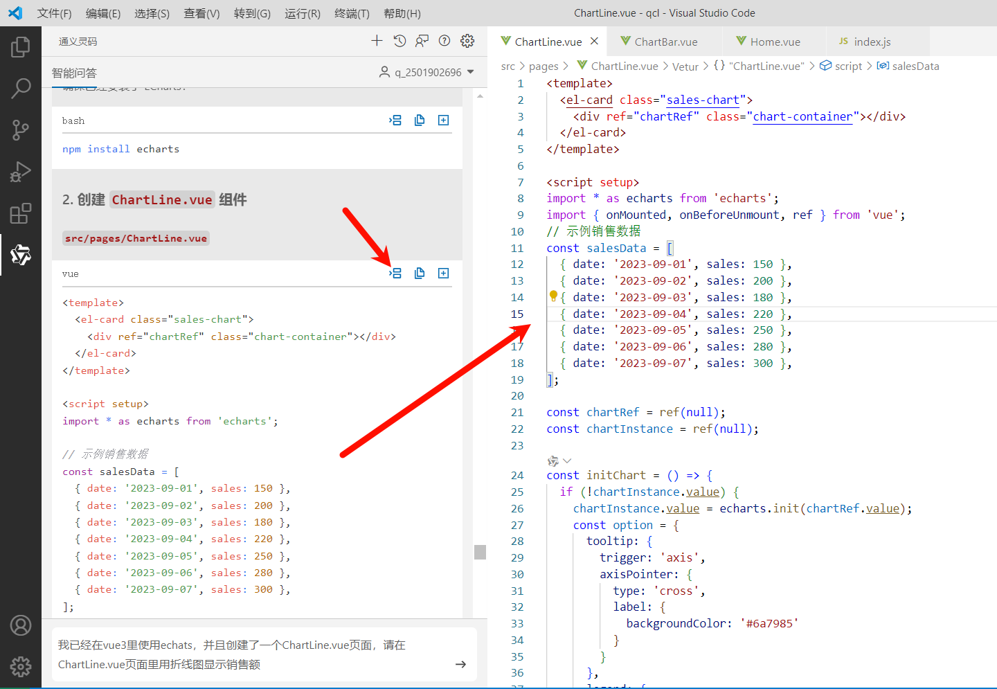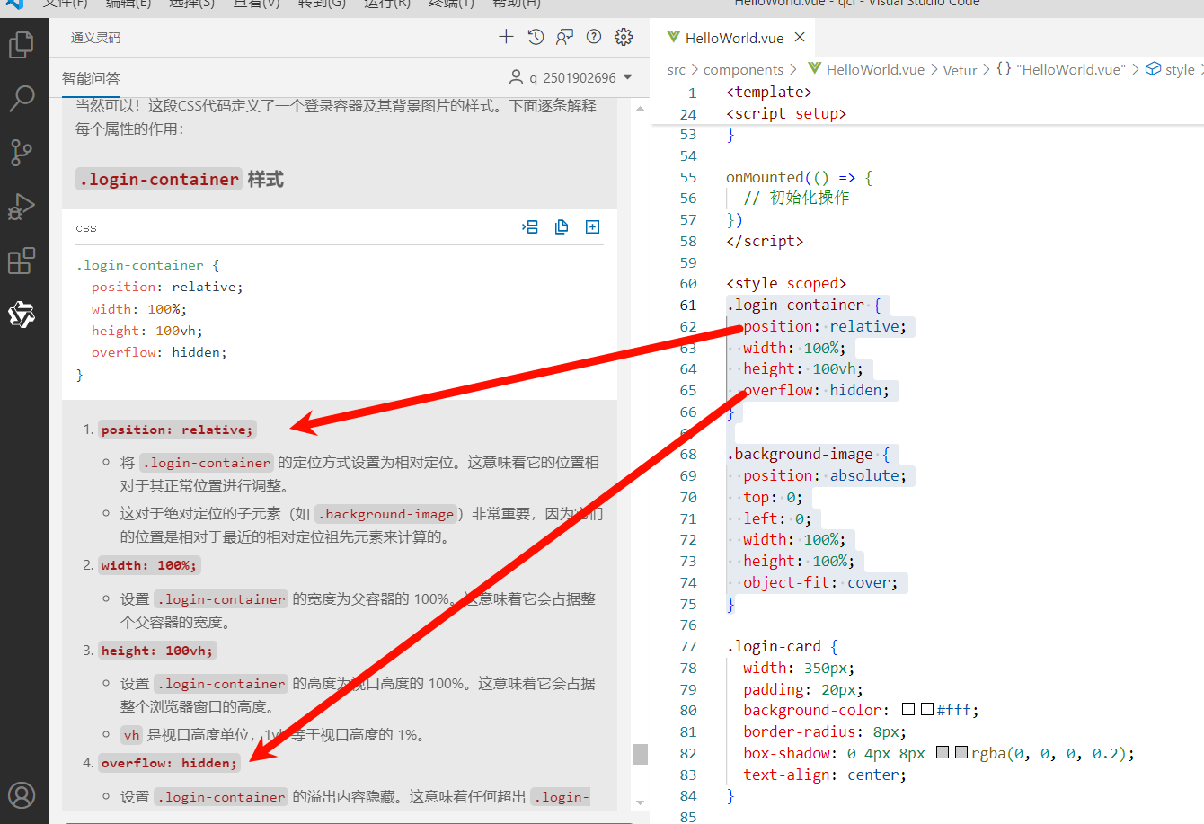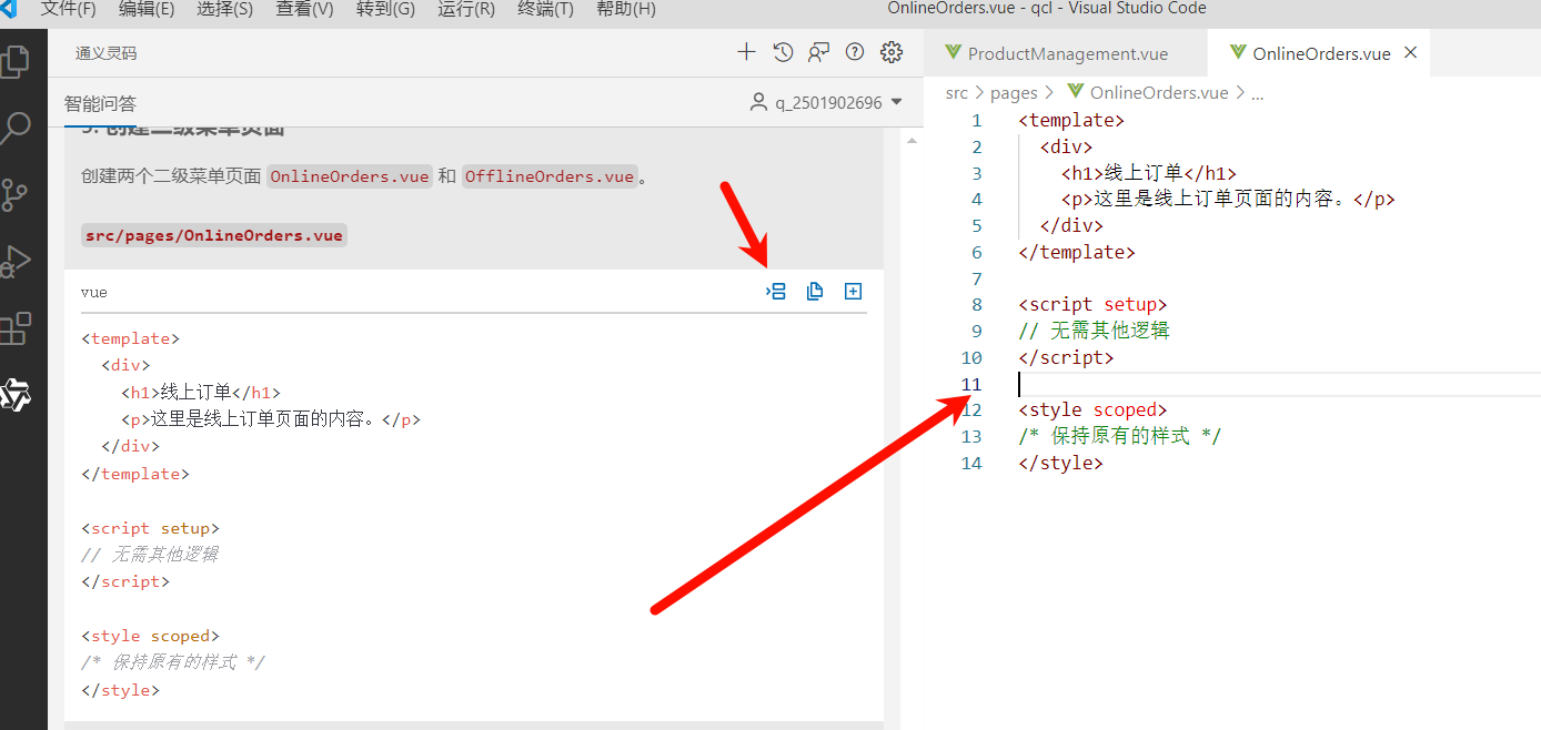 - ai可以解答一些代码无关的问题:比如我们想知道vscode的一些快捷键,就可以直接问ai。