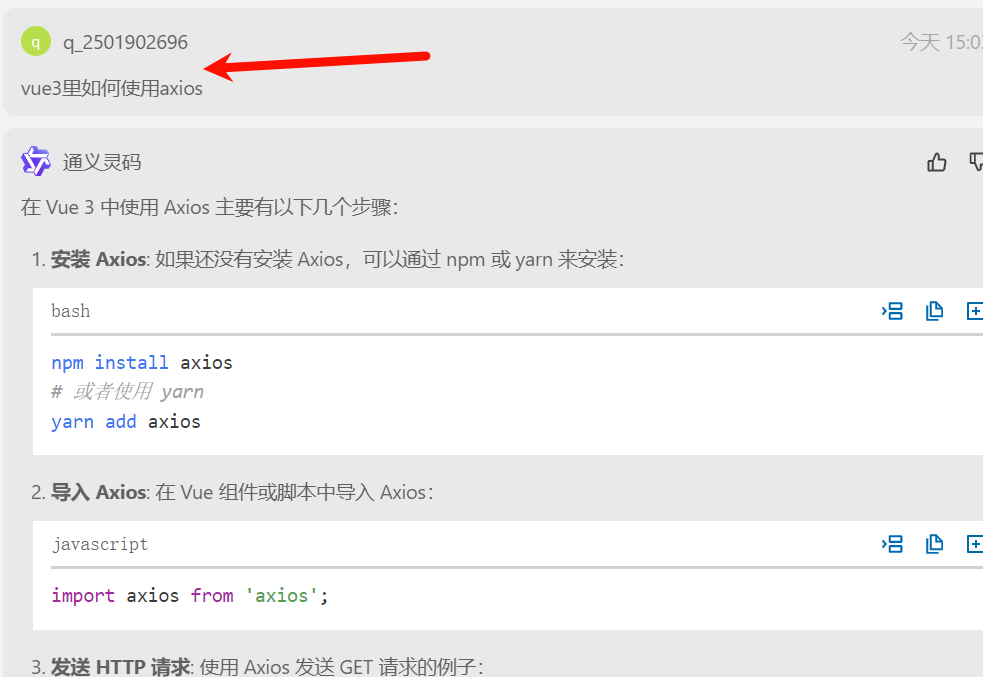 我们前面模拟好后台数据了,接下来就用axios来做真实网络请求。假如你忘记了怎么使用axios,可以交给ai