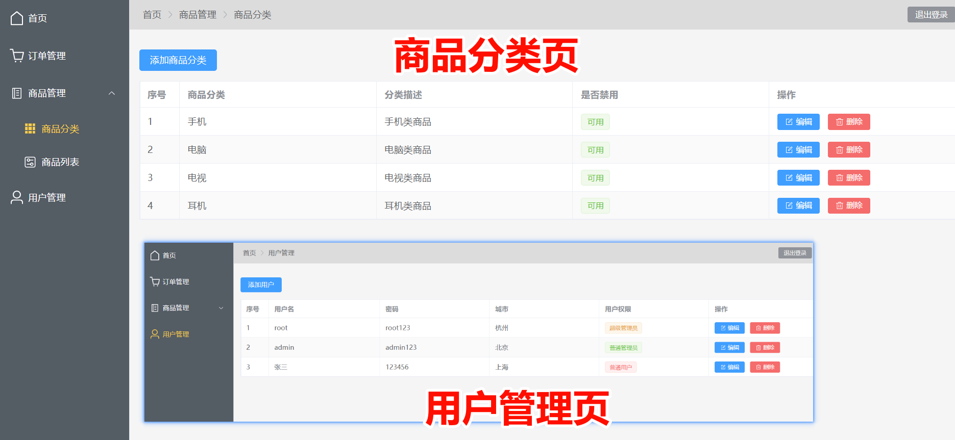 然后编写用户管理页,首先我们看下,用户管理页和之前学过的商品分类页是不是特别像