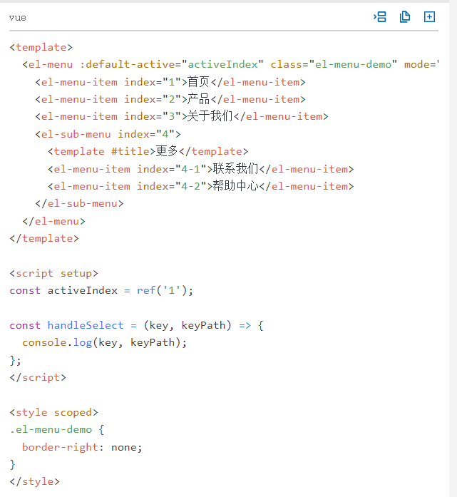 使用方法: 键盘打出el开通的,就可以快速的实现element相关代码片段。