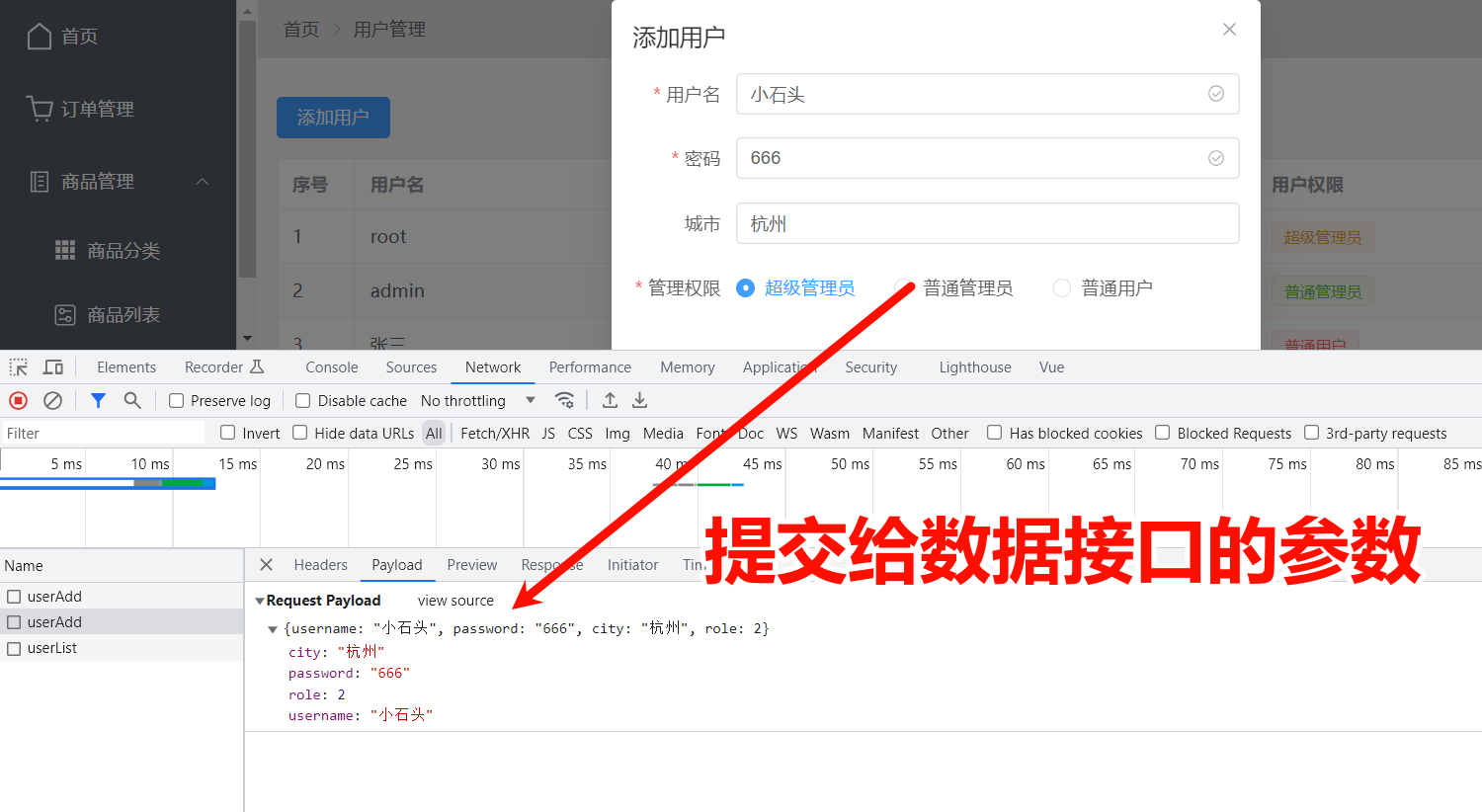 我们添加用户的时候要调用添加用户的接口