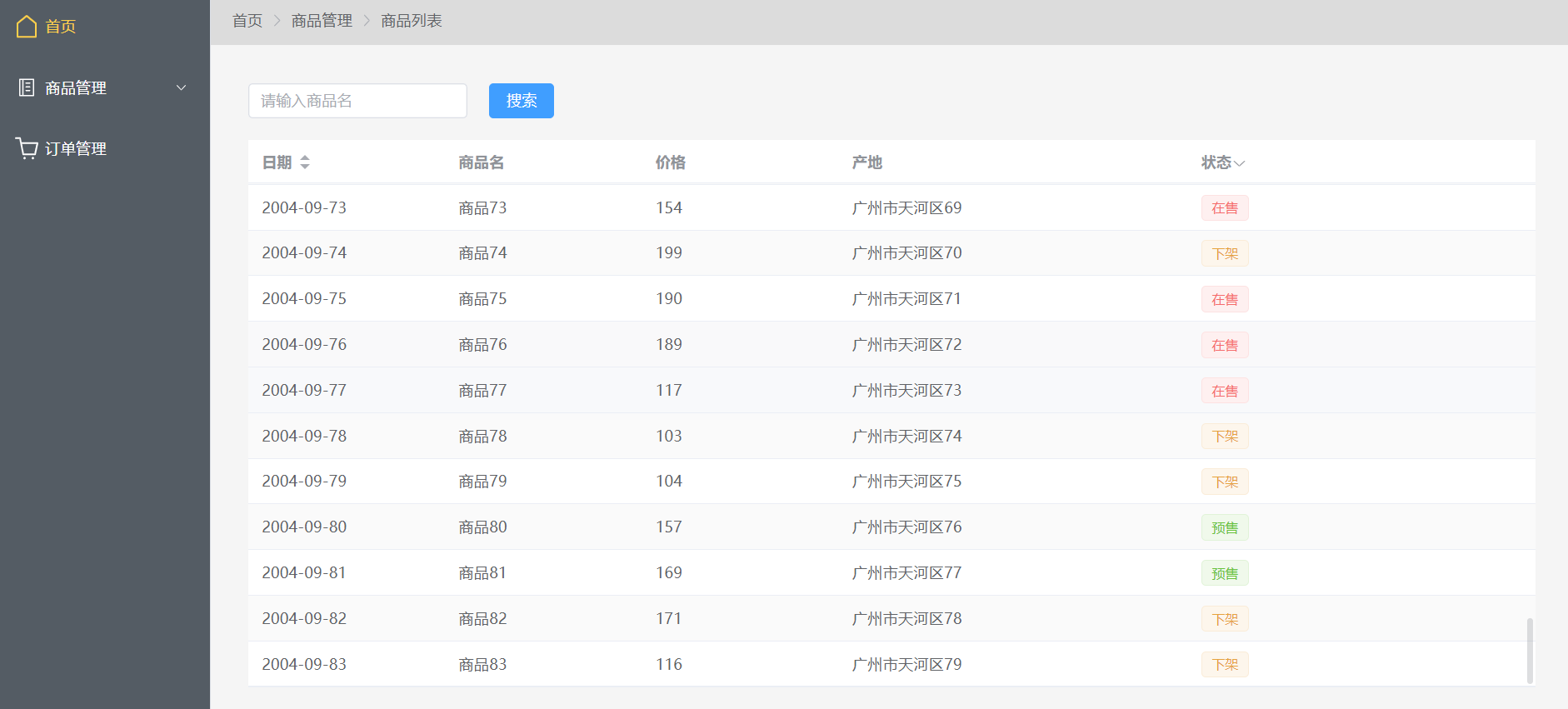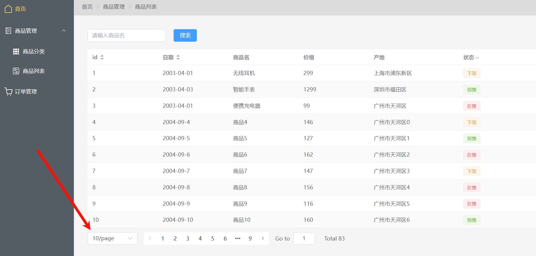 3,商品管理页