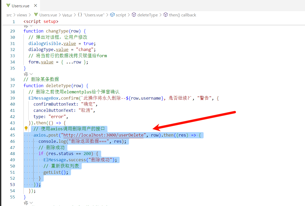 删除接口拿到数据后,其实是根据id查询到当前用户如果存在,就把这个id对应的用户删除了。