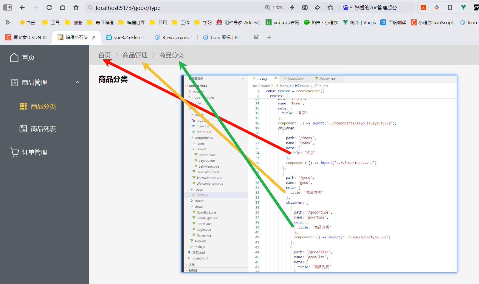 所以我们这里不再重写写代码,直接把商品分类页代码拿过来改下就行。首先是添加用户功能。