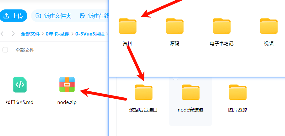 我们点击资料–》数据后台接口—》把node.zip下载到桌面,解压好。然后用vscode新建一个窗口打开这个node项目