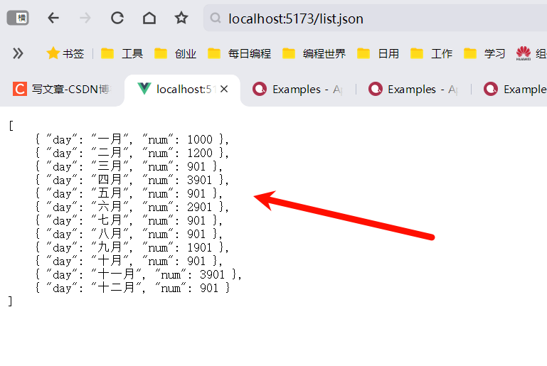 比如我们后台修改了网络数据,把四月的值从3901改为100