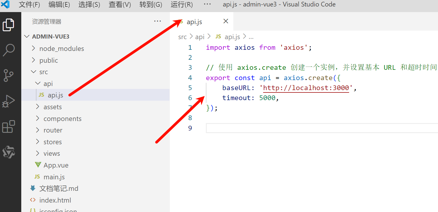 在项目的 src 目录下创建一个api的目录,然后在api目录里创建一个 api.js 文件,并编写如下代码: