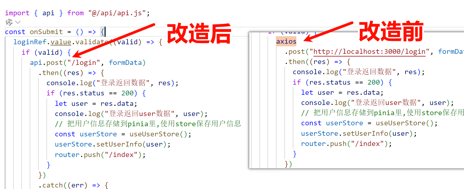 当然你也可以自己把我们之前登录页面用到axios的地方改成封装后的。