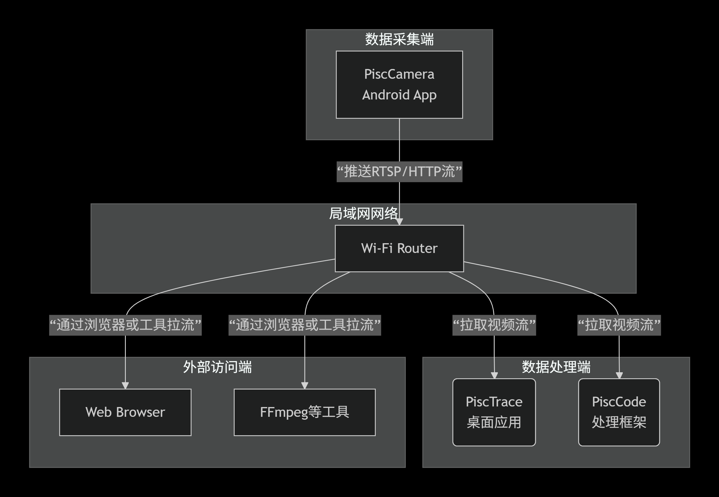 PiscCamera 是一款专为机器视觉工作流设计的Android应用,作为PiscTrace和PiscCode的官方配套数据采集终端。它能够将安卓设备摄像头转换为标准的网络视频流源,通过HTTP协议在局域网内发布实时MJPEG视频流。