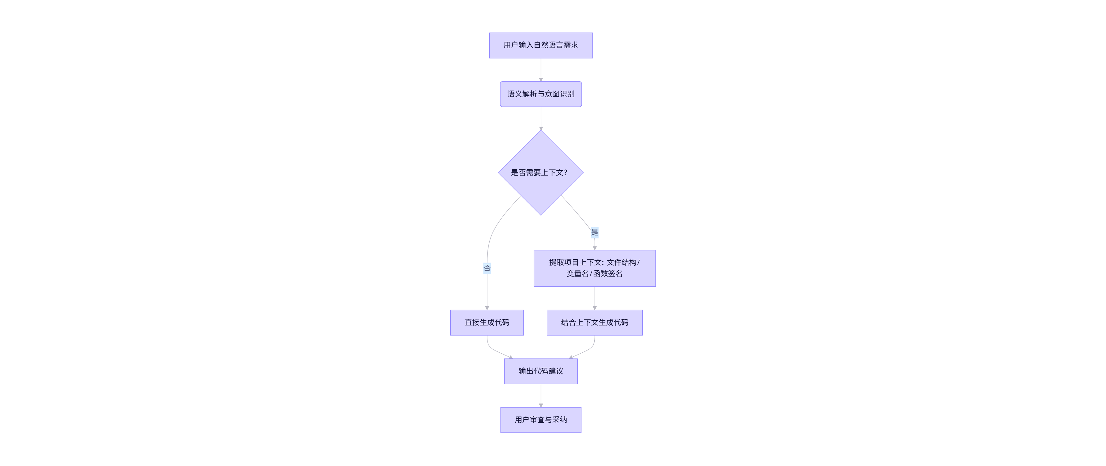C -- 是 --> D[提取项目上下文: 文件结构/变量名/函数签名]