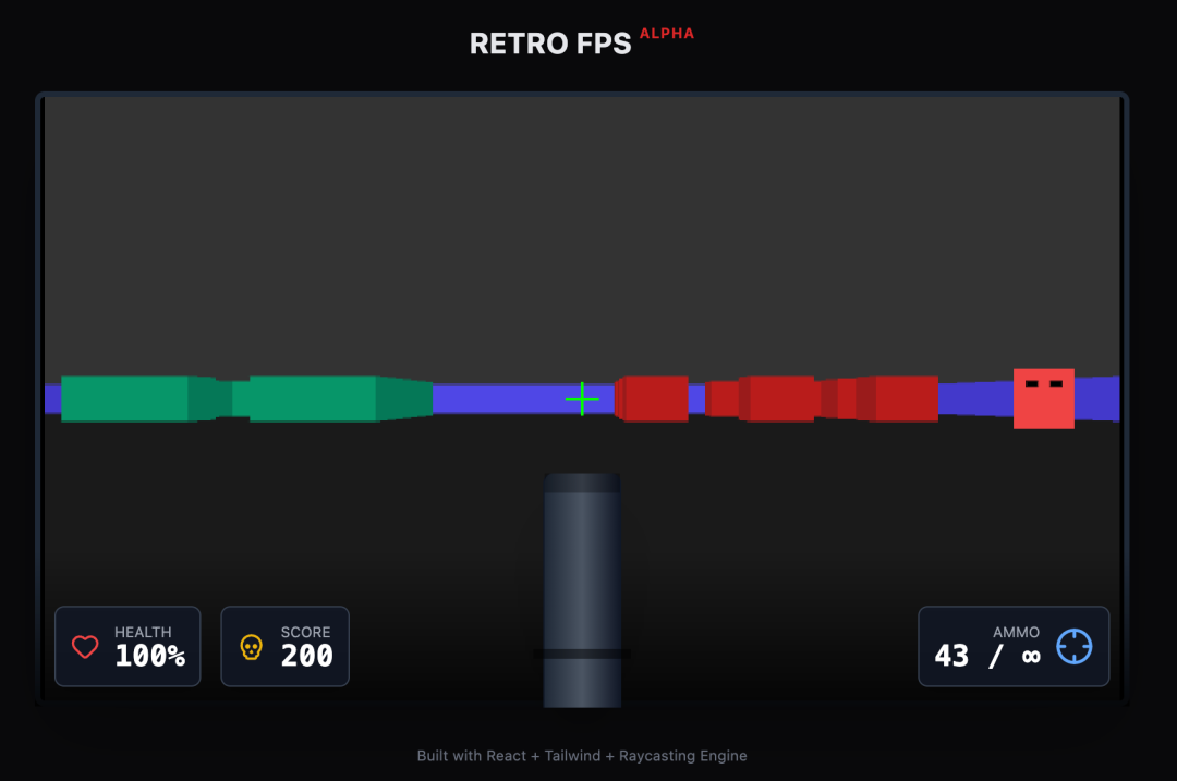 下面再让它做一个枪战FPS小游戏,我提示词写得很简单,它做出来的版本有点像红白机上面的小游戏。