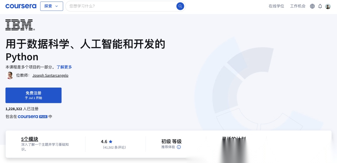 1、IBM - 用于数据科学、人工智能和开发的 Python