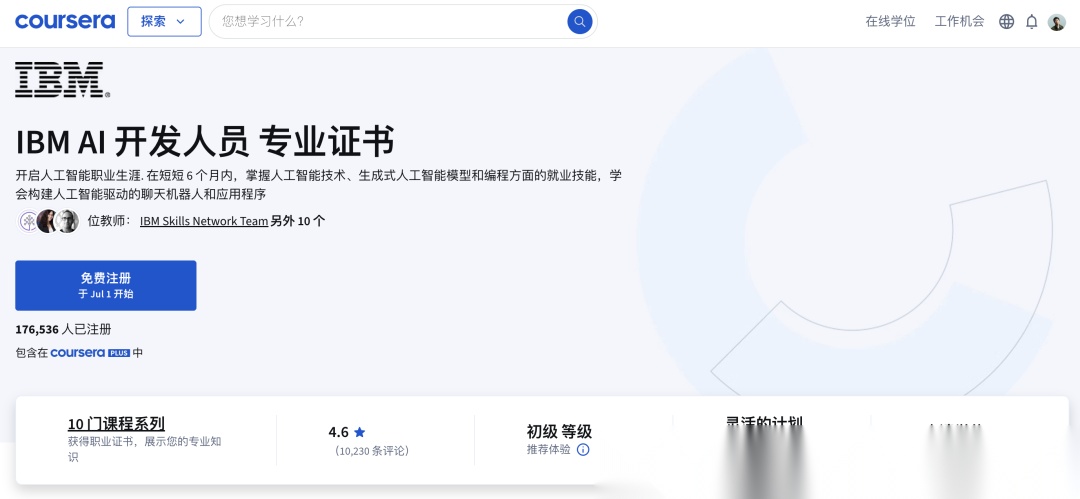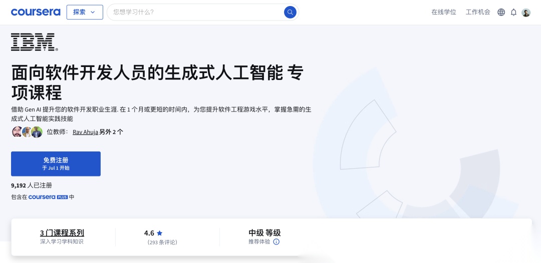2、IBM - 面向软件开发人员的生成式 AI 专项课程