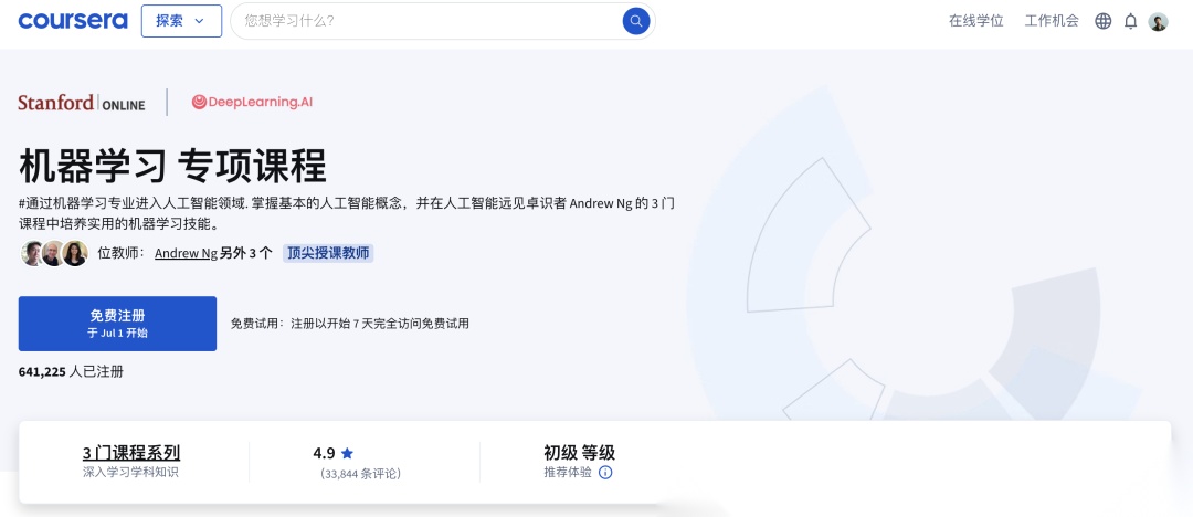 4、斯坦福大学 - 机器学习专项课程