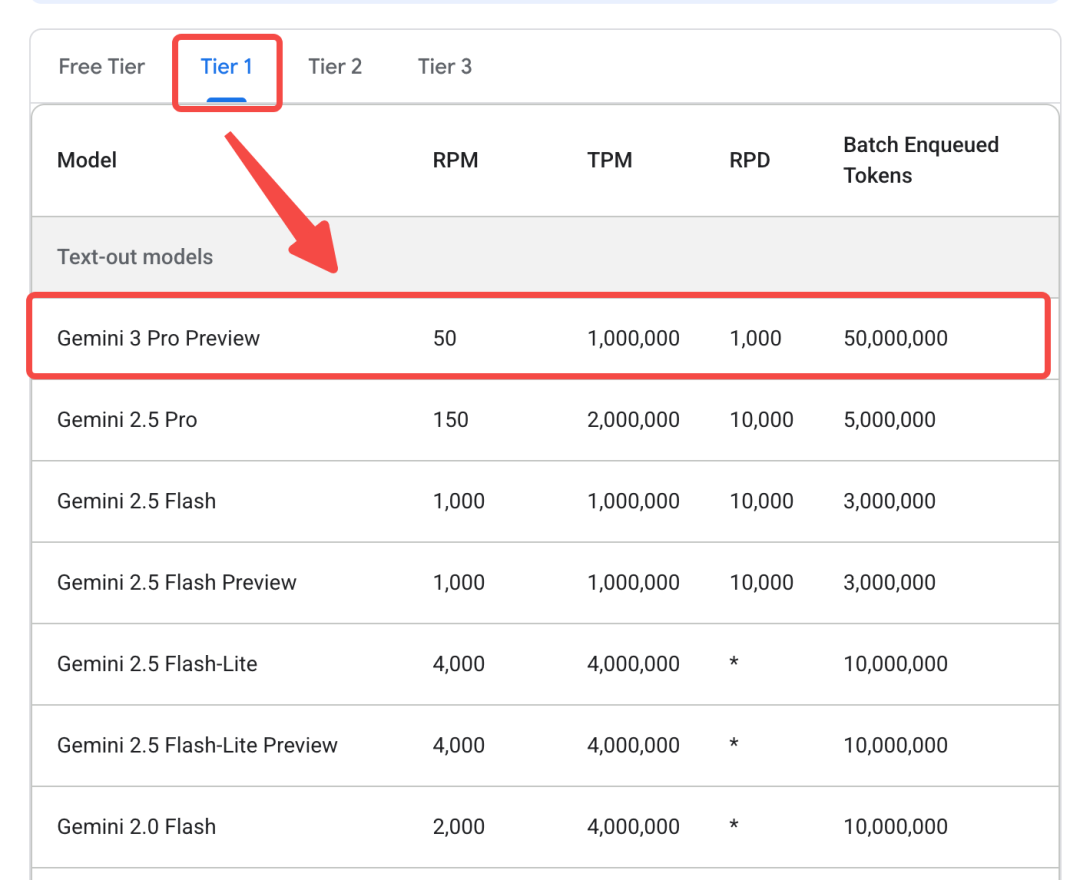 目前Gemini 3 Pro不向免费用户提供(详情:https://ai.google.dev/gemini-api/docs/rate-limits#tier-1)