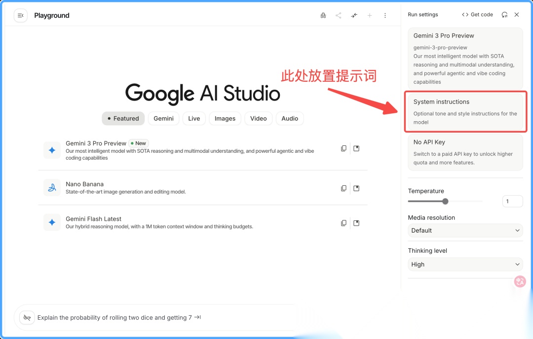 1.打开链接选择Gemini3.0pro模型:https://aistudio.google.com/