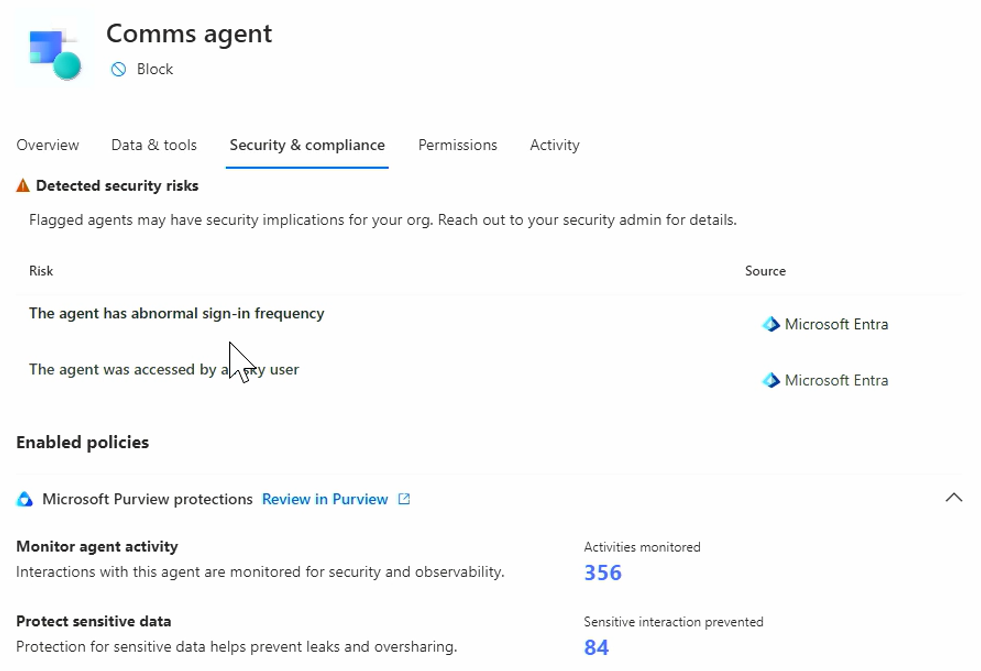 Microsoft 365 agent中的security, compliance也是基于Microsoft Defender, Microsoft Purview和Microsoft Extra平台的