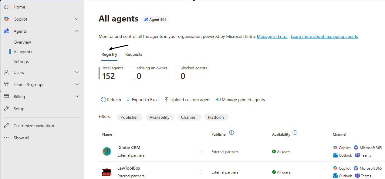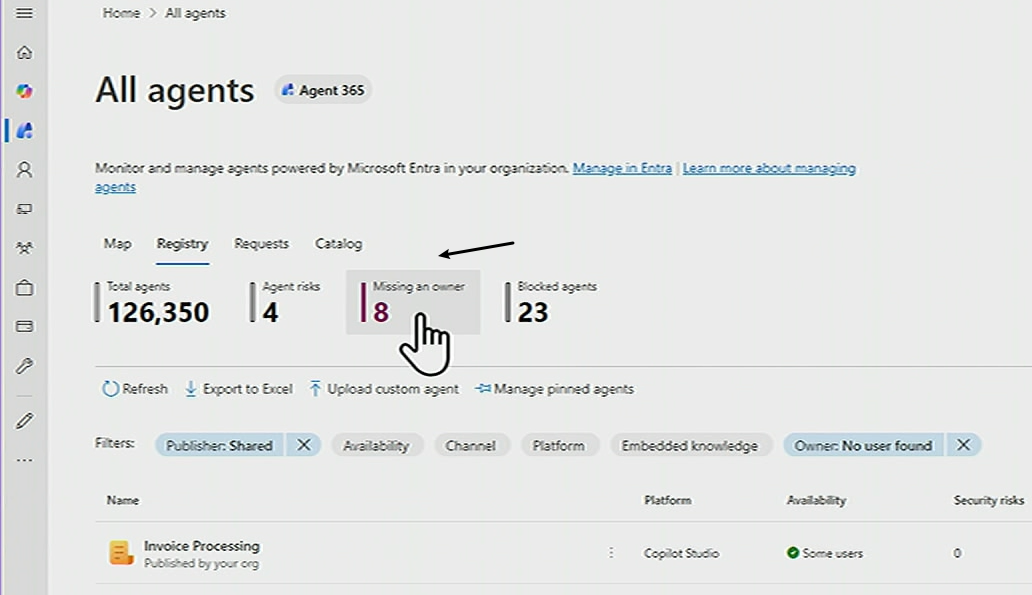 可以打开Microsoft Agent 365 portal https://admin.cloud.microsoft/#/agents/all ,点击 Registry tab,就可以看到所有的agents,包含影子agent。