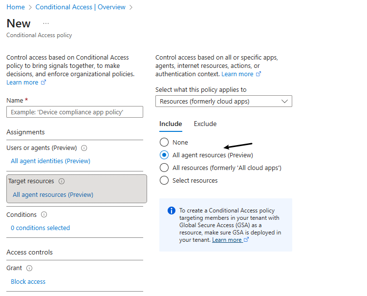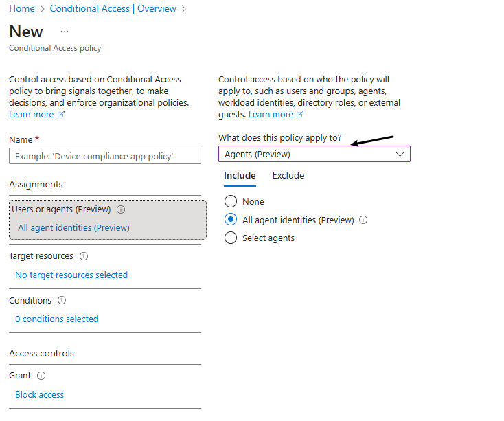 微软的Azure Conditonal access policy也进行了更新,可以基于agent进行设定