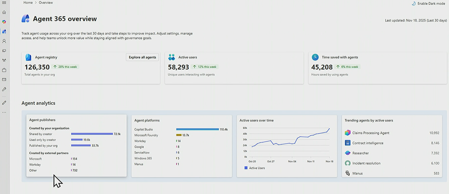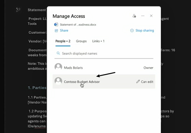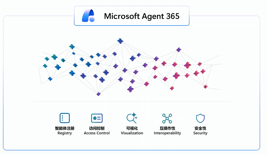由于agent可以自主计划并执行任务,微软将agent当成user来看待,发布了Microsoft Agent 365平台,Agent 365可以对来自各方(包含partner)的agent进行注册,管理,使用统计,访问控制,安全合规方面的管控以及生命周期的管理等。