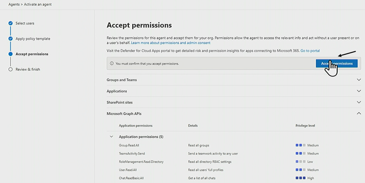 4)对agent所需的permission进行审核,然后点击Accept permissions按钮