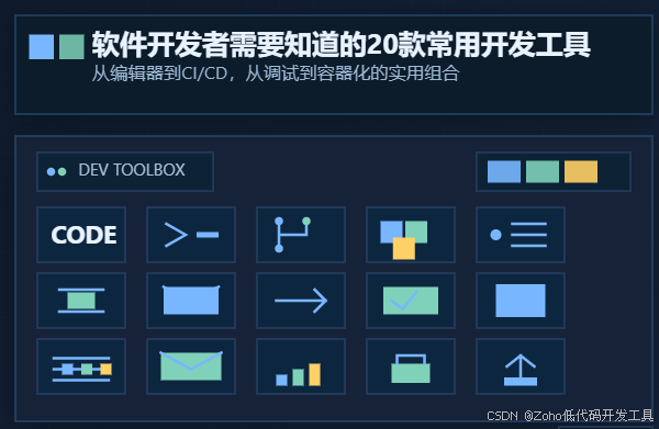 本文介绍了20款软件开发必备工具,涵盖代码编辑、版本控制、持续集成、AI编程、低代码平台及项目管理六大类。重点推荐了VSCode、Git、Jenkins等基础工具,以及GitHub Copilot、Zoho Creator等创新平台。这些工具能显著提升开发效率,建议开发者根据项目需求和技术栈选择合适工具组合,其中AI编程和低代码平台代表了行业未来发展方向。