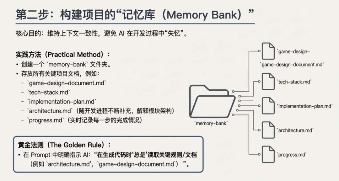 - 维持上下文一致性:用 Memory Bank(记忆库)