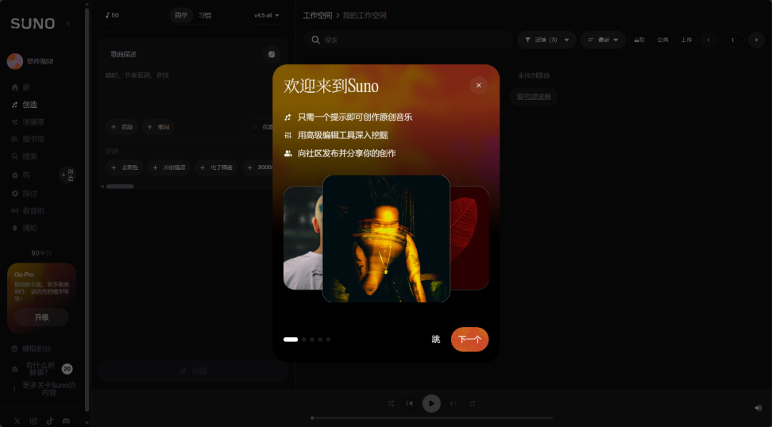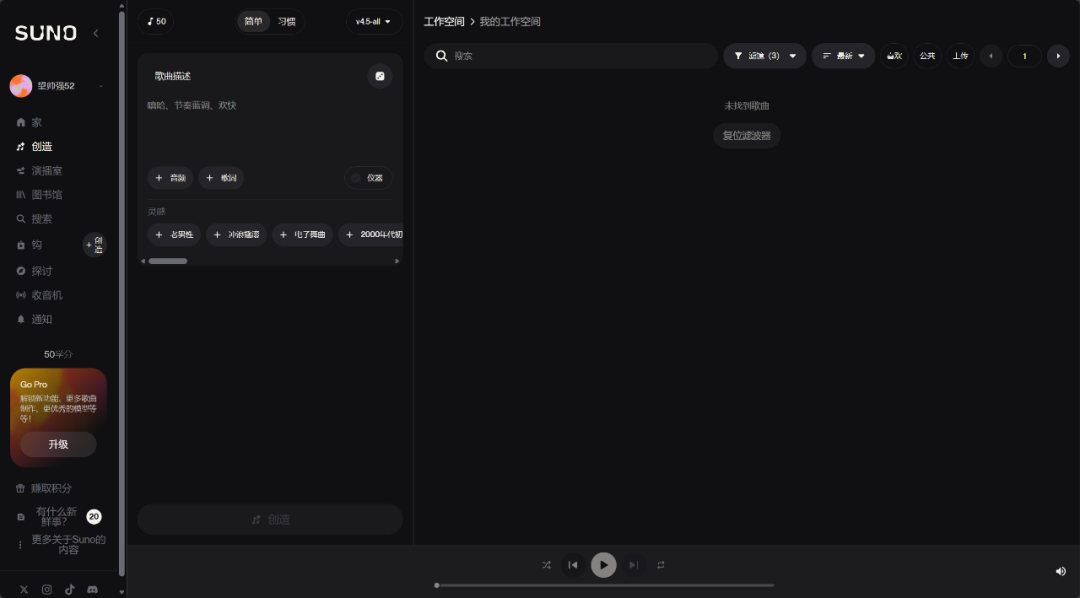 一句话生成完整歌曲(含唱词 + 配乐)。 你可以让它生成:
