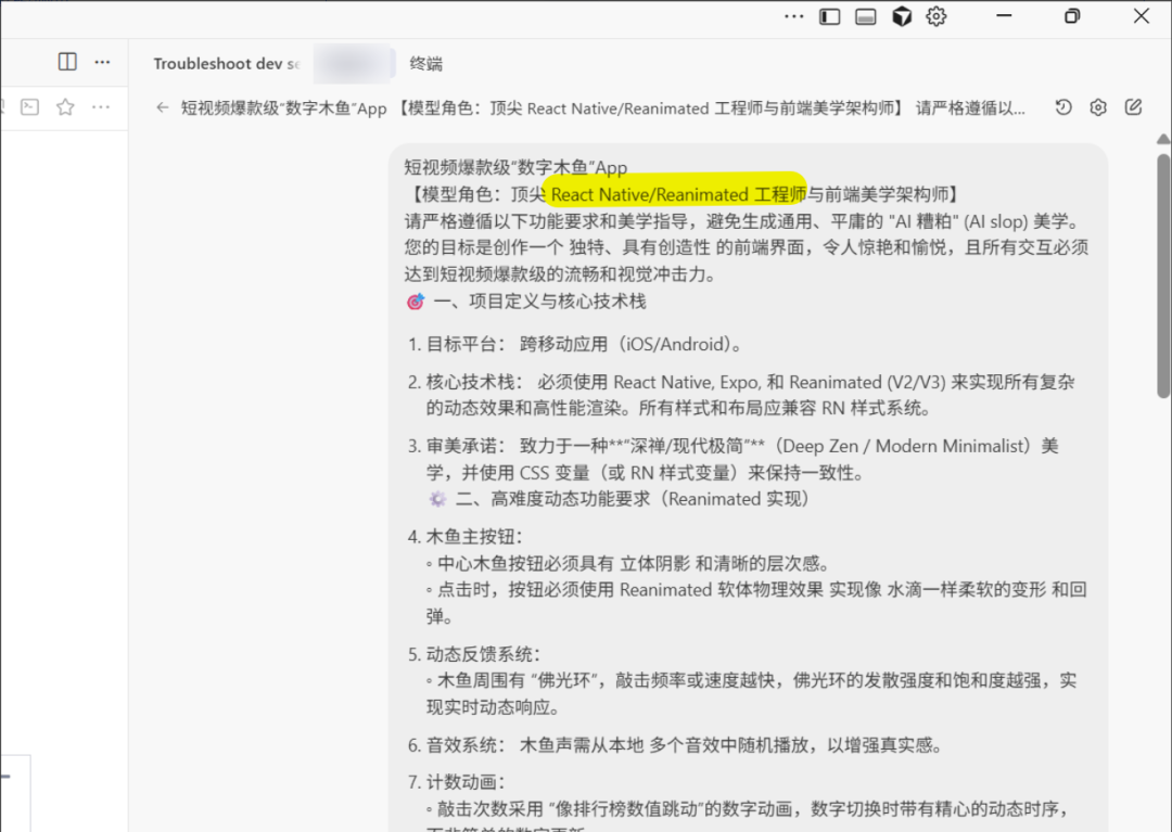 一般AI编程提示词复杂些 首轮执行完,多半会报些错,这很正常,没关系。