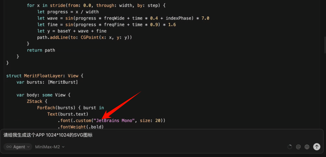 我们切换到Xcode查看MiniMax M2第1轮的运行情况。
