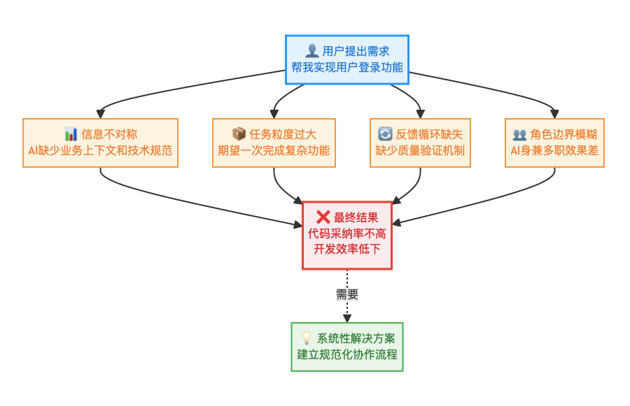 上述四个核心问题共同导致了AI编程采纳率不高的现状: