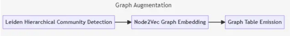 现在我们有了可用的实体和关系图,我们希望了解它们的社区结构,并用其他信息扩充该图。这分为两个步骤:社区检测和图嵌入。这为我们提供了显式(社区)和隐式(嵌入)方法来理解图的拓扑结构。