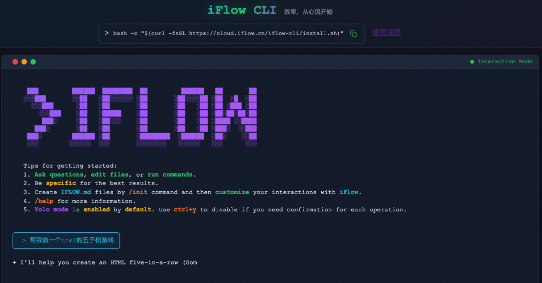 这是CLI的强项,进入到你的项目中,打开iFlow CLI,什么功能不熟悉,问他;什么业务需要实现,描述清楚让CLI帮你实现;遇到报错了,把报错信息贴给CLI让它帮你解决。